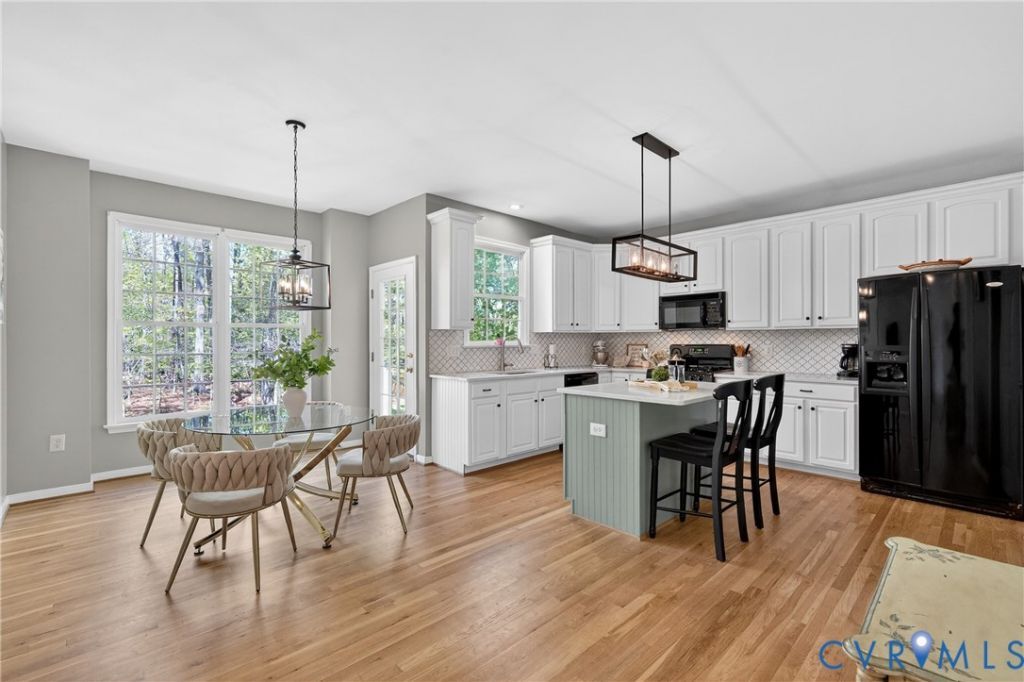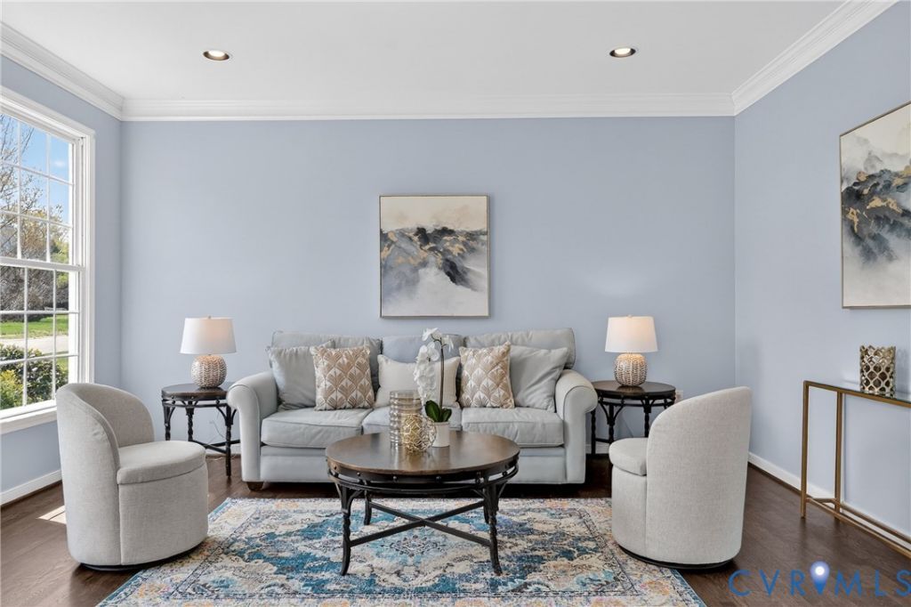 Welcome to Lenox Forest in Riverdowns, ideally positioned on the 'river side', with quick access to schools and Robious Landing Park. Built by Parker Orleans and thoughtfully updated, this light-filled home offers the space, versatility, and quality details that growing households appreciate. From the moment you step into the grand two-story foyer with its turned staircase, newly refinished hardwood floors, detailed millwork and 9' ceilings, the home makes an impression. You are welcomed by both the formal living & dining room and expansive hallways that lead to the Great Room with its dramatic tray ceiling and gas fireplace. The main level balances everyday living with entertaining ease as the updated kitchen showcases its quartz countertops, Arabesque ceramic tile backsplash, gas cooking and walk-in pantry space. The eat-in nook that overlooks the private backyard and patio will easily accommodate a table for eight. The flexibility continues with a first-floor bedroom and full bath which provide the perfect setup for guests, a home office, or multi-generational living. Upstairs, the primary suite offers a true retreat with a sitting room, dual walk-in closets, and a spa-like bath with soaking tub, frameless glass shower with ceramic tile surround, and double vanity. The expansive hallway continues to the double door entrance of the recreation room with its palladium window and abundant natural light, creating a flexible space for play, work, or a potential sixth bedroom. Three additional bedrooms and a well-appointed hall bath ensure room for everyone while the walk-up third floor provides over 240 square feet of finish-able space. (Drywall is already provided and conveys.) What you may not see: all three full baths have new ceramic tile tub or shower surrounds, 2nd floor HVAC 2021, full yard irrigation, dishwasher 2025. Ideally situated just steps from schools, dining, fitness centers and spas as well as and the James River and its trail system, this home has the ultimate lifestyle!